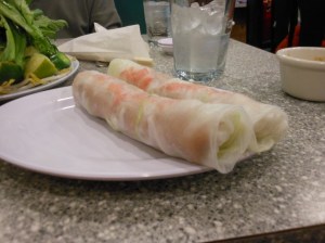 Spring rolls, and he knows that I am the only one that eats them, not Ken, and only brings one plate. I personally think these are the best spring rolls with the best peanut sauce, at the most reasonable price, that I have eaten in the Denver vicinity. (For those of you that may not have access to spring rolls, they have lettuce, bean sprouts and basil, with pork slices and shrimp, wrapped in rice paper, with a peanut dipping sauce.) You should try them.