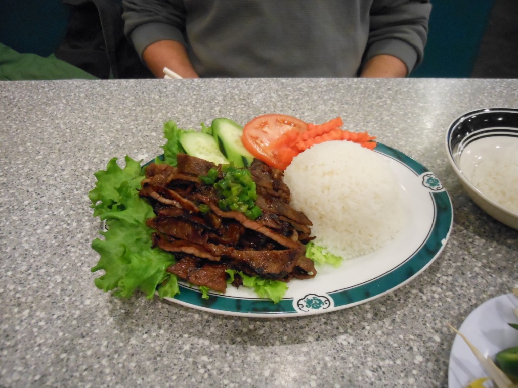 Ken gets a beef and rice dish, with the beef in a sauce that I like too but not nearly enough not to order the pho.