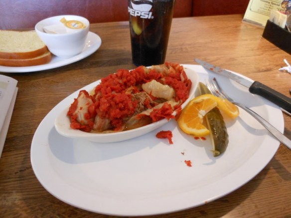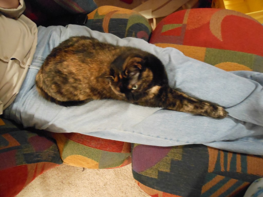 Meanwhile I was working on a Christmas present and running out of yarn, it was a variegated red/green/white which I have had for who knows how long. I checked to see if JoAnn’s had any after the knitting party (trip #2 to JoAnn) (no, they didn’t), but got some hunter green yarn, some pins, and some rotary cutter blades (I had coupons) and inserted some hunter green instead to finish up in the Christmas present, which worked just fine. I don’t recall being useful for much last night after the party, knitting, and eating. I did make a fine batch of chili, however.