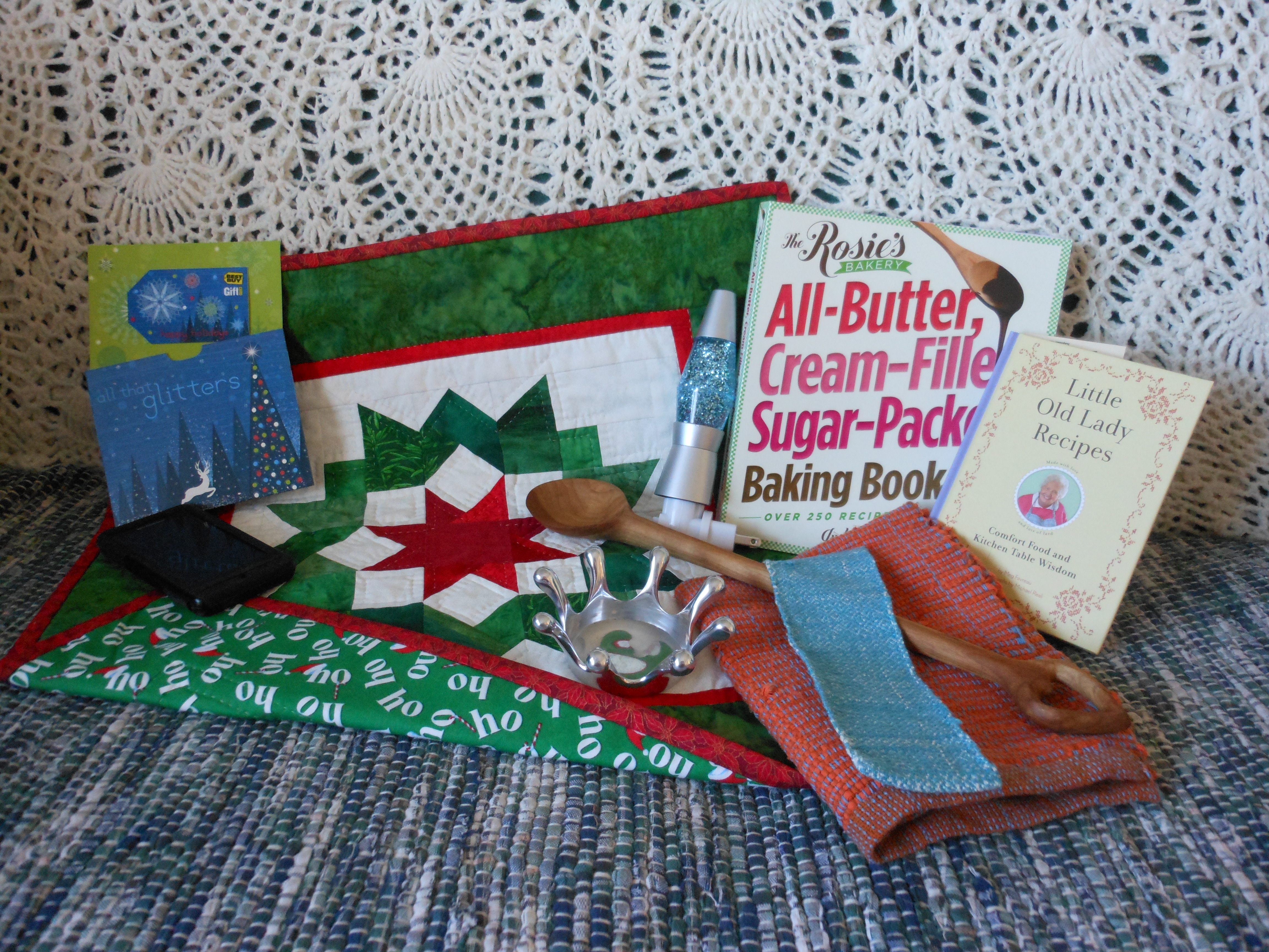 Ken got me the All-Butter, Cream-Filled, Sugar-Packed Baking Book, Little Old Lady Recipes, and a very cool necklace. Little Old Lady Recipes has recipes but also pictures and hilarious quotes, my mom and I had fun reading that. For example: “If someone asks you if you need any help, take off your apron, hand it to them, and go in the living room and have a drink.”