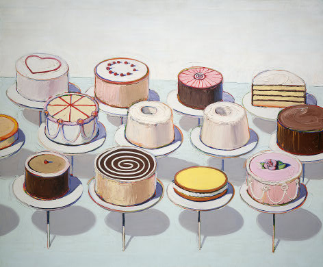 After too little time in the West Building, I went to the East Building, where they have modern art, including several Calder mobiles (I learned about Calder when we were living in Michigan), and Wayne Thiebaud’s painting “Cakes” which I love of course because I love cakes.