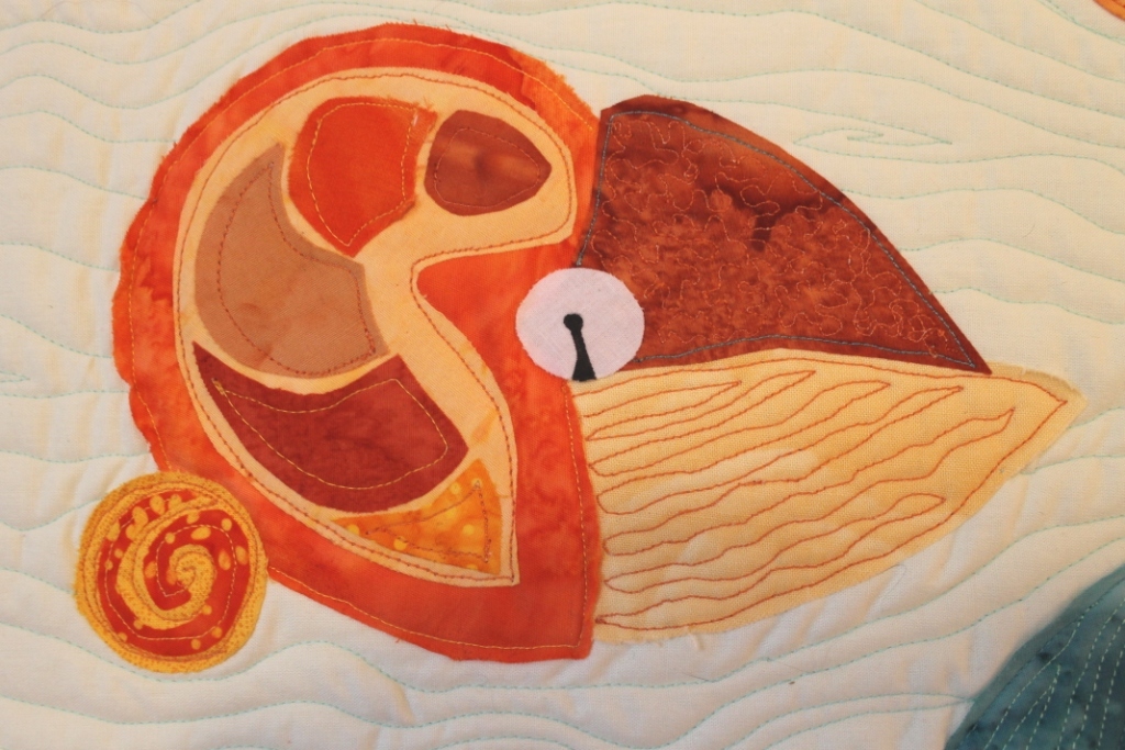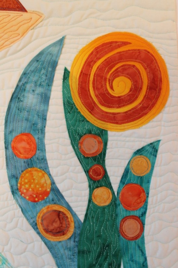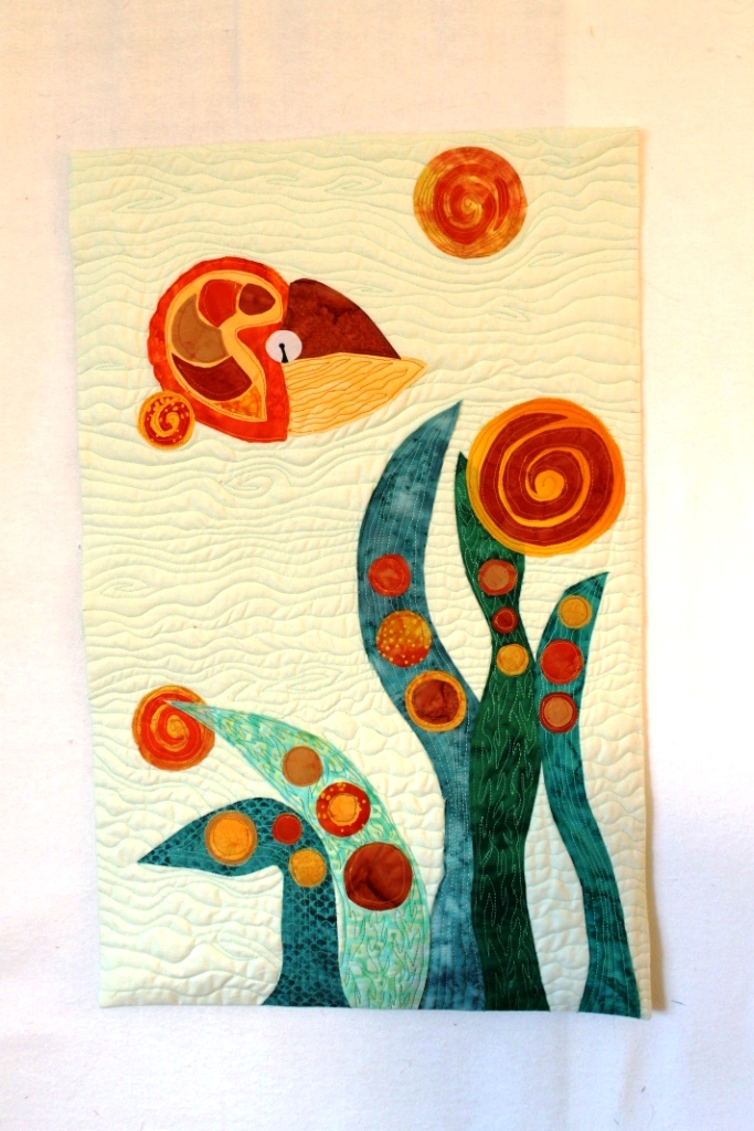Saturday I went to the Sewing Expo with my friend Cathy, we met a friend of hers from her work there and oh we had a lovely time. I decided my next project for my Color Theory class will be “Still Life with Newt,” in the primary color triad, and started collecting fabrics. I want to make a large vase with a blue print fabric, and I think I found one or two that will work. I also found several other useful things. That is a whole ‘nother post.