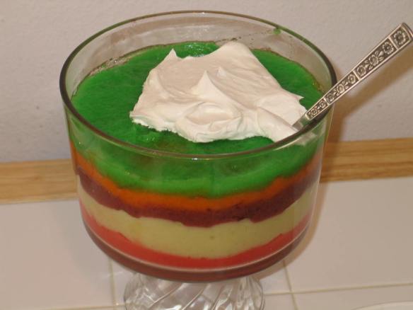 The meal was fine, minestrone, a salad, and then a small steak, two shrimp, carrots, asparagus (which was particularly good I thought) and a mound of mashed potatoes. What was striking was the plate of butter. There were two types of butter, plain whitish, and then a darker colored one that we finally asked and found out was herb/garlic. They were in huge mounds piped onto a plate – I kid you not, EACH of those butter mounds was bigger than the serving of mashed potatoes we got. They are going to go broke on the butter in this place. Of course, from the consistency, I am not convinced it was REAL butter, so maybe that explains it.