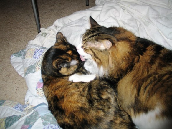 Flight was quiet, in a pretty small jet, only 4 seats across, was almost full as usual. I alternated between knitting (my mom’s socks are finished except to Kitchener stitch the toes – which requires a quiet well-lit room and possibly some chanting) and reading a new book. “How to Moon A Cat” which is part of a series my friend Cathy started me on. They are fine airplane reading.
