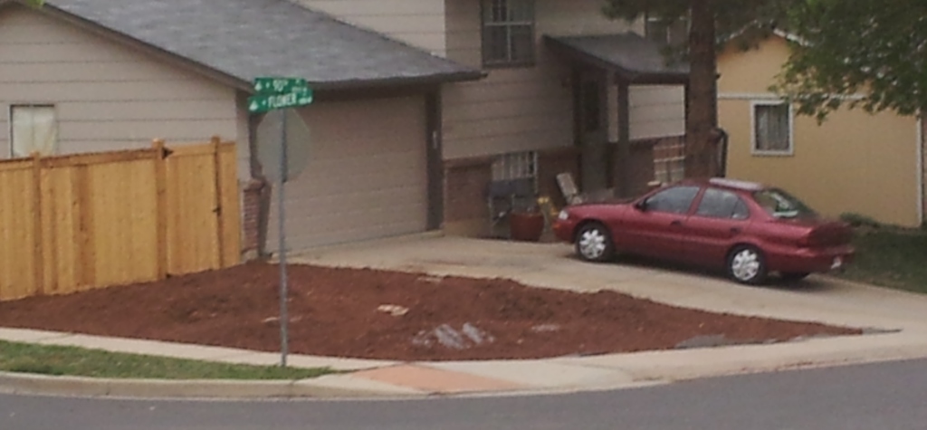 In other news, the neighbors with the alien landing pad have now camouflaged it with mulch, so as to be less obvious. There might even be one or two aliens hiding UNDER the mulch. Small ones, you know. You can see they put down some cement stepping stones for the landing vehicle.