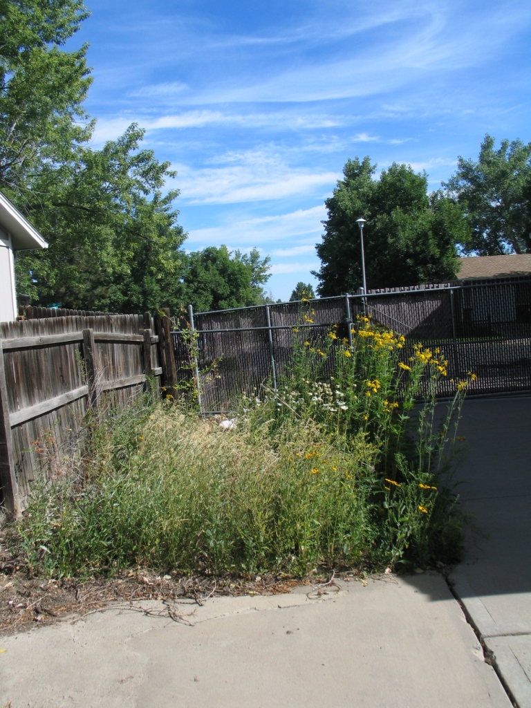 Then we will put down black plastic and mulch and use some of the interesting rocks I have brought from SD to make some beds, and re-install some of the plants that have shown sufficient vigor to grow over there, the sunniest and hottest part of the yard.