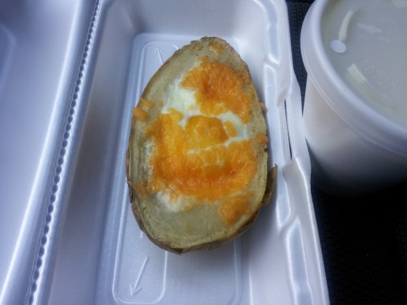 Finished my 2nd day of a training seminar. Started out the day with another potato bomb from WSB Soup and Chili, this time I got the sausage gravy on the side instead of the green chile on the top. This was much easier to eat in the car. Although he very generously give me about 3 times as much gravy as I needed. And I remembered to take a picture: