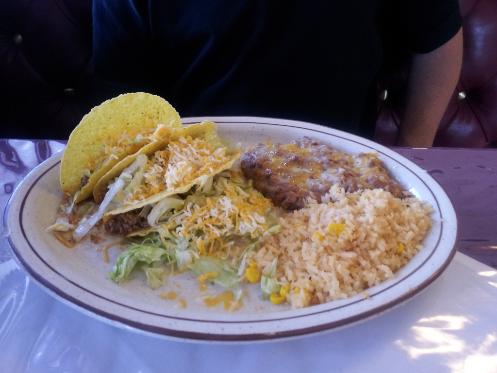 Ken watched something about Cinco De Mayo at work and then was hungry for Mexican food (apparently he is easily suggestible too) and that was fine with me. I said we had to eat somewhere different than we usually did so I had something to blog about. He remembered a restaurant he had covered an event at that was close to my location so we met there – Luna’s. They had shrimp soup but I have been disappointed in shrimp soup almost everywhere except at Gregorio’s, (no webpage), so I decided to try something else new. I had the sopes, which have a fried masa base and then are topped with refried beans, your choice of meat (I had the al pastor) and then lettuce, tomato, sour cream, and cojita cheese. T
