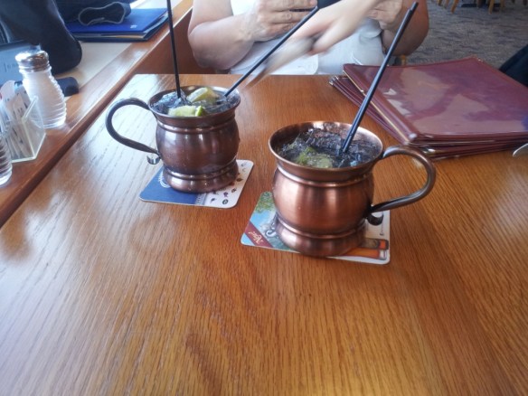 I was introduced to a new drink – the Moscow Mule. It is like a Dark and Stormy but is ginger beer and vodka instead of ginger beer and rum. Mmmmm. Apparently they are supposed to be served in a copper mug. At the Bozeman airport, you have to give them your credit card so you don’t walk off with the expensive mugs.