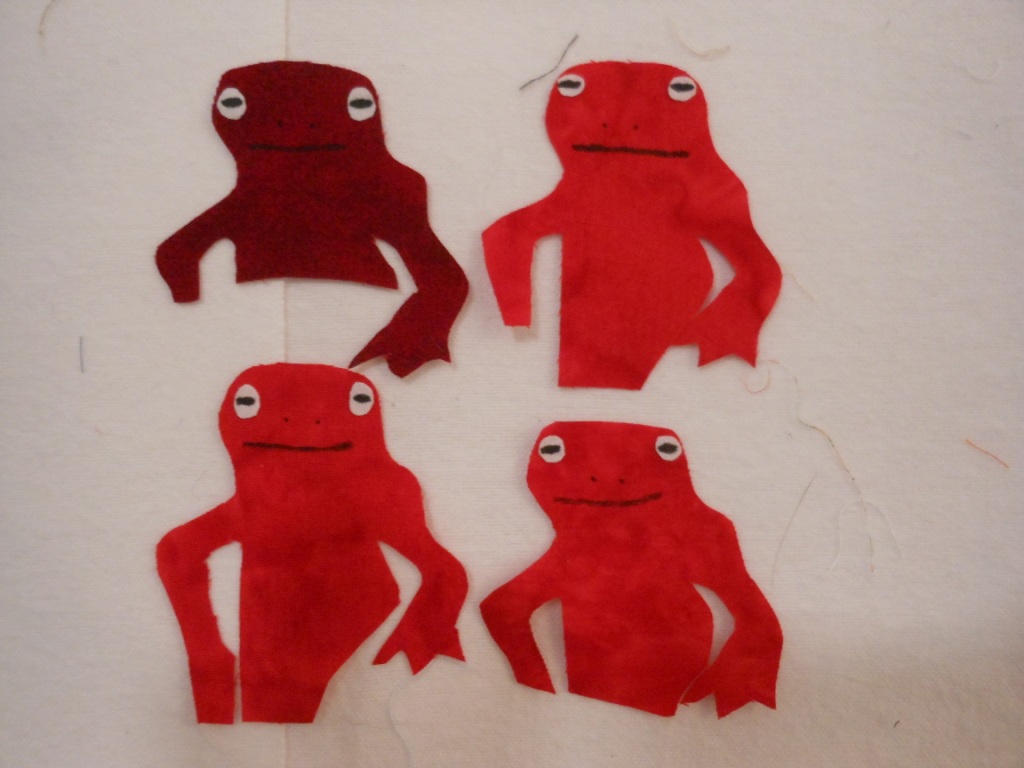 #1 too dark of a tone of red.  #2 too glum. #3 too, I don’t know, smug? He looks irritating. #4 Too happy. Too much like Kermit the Frog.