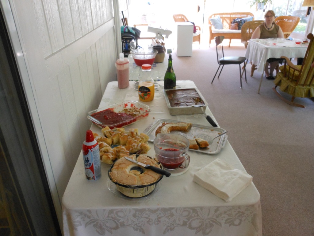 Didn’t get too much knitting done this weekend, but it was for a great reason. Ken’s brother and his wife and little baby *welll OK, not so little* Owen were trying to fly home from South Dakota to San Francisco on Saturday. Because of the crash of the Asiana flight at the San Francisco airport, they were advised to go ahead and fly the first leg of their flight to Denver, but they weren’t going to be able to get any further than that, so they were stuck at the Mostek B & B for at least Saturday night. Ken got on the road to the airport and I went to the grocery story and got started cooking (overfeeding your guests as much as possible is part of my heritage).