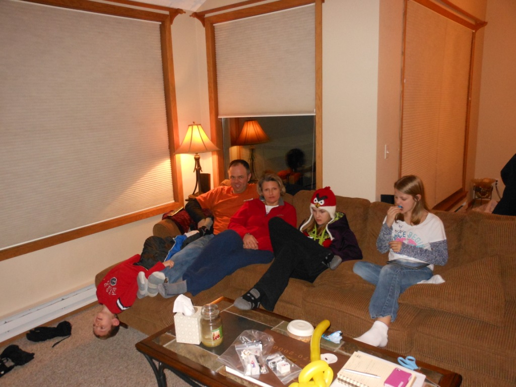 Didn’t get too much knitting done this weekend, but it was for a great reason. Ken’s brother and his wife and little baby *welll OK, not so little* Owen were trying to fly home from South Dakota to San Francisco on Saturday. Because of the crash of the Asiana flight at the San Francisco airport, they were advised to go ahead and fly the first leg of their flight to Denver, but they weren’t going to be able to get any further than that, so they were stuck at the Mostek B & B for at least Saturday night. Ken got on the road to the airport and I went to the grocery story and got started cooking (overfeeding your guests as much as possible is part of my heritage).