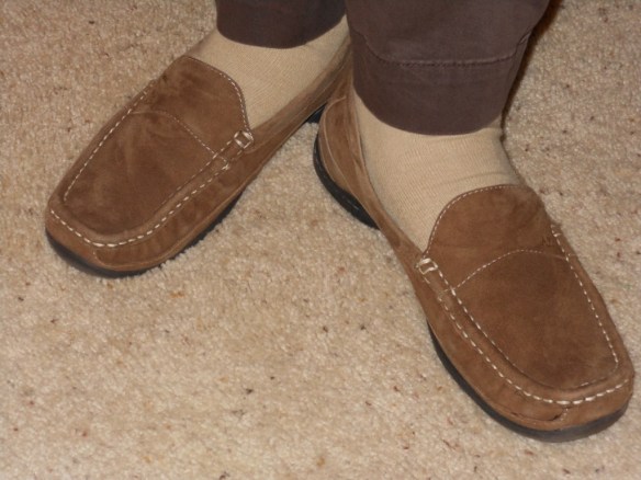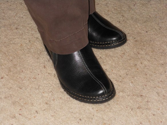 He ALSO got Magic Slippers booties, with a slight modification and addition of the ribbing/sock top which apparently makes them stay on better. “Camo” colored yarn, which was a fortuitous donation from my friend Judy, when I was looking for sock yarn for this very purpose.