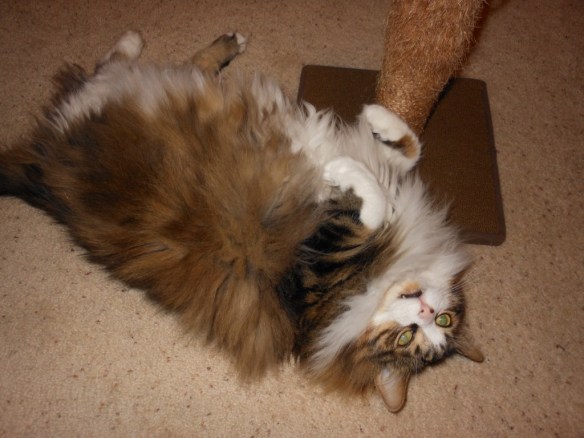 And…other than wrapping up baby afghans and mailing them off, what else have I been doing? I FINALLY finished the #359 Nancy One Skein Shrugigan by Lisa Limber, which I believe I started in June 2010. This was a good airplane knit, but then I ran out of yarn, and had to search for yarn in the same dye lot (after tearing my studio apart, of course, being certain I had purchased enough) (apparently I hadn’t). I made it a bit longer than the pattern suggested, and with a different yarn, so that was probably the problem. I LOVE how it turned out, I have worn it several times already, and get compliments on it.