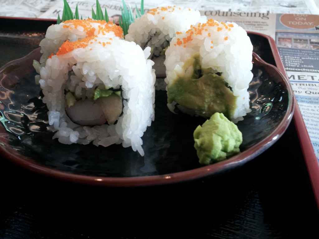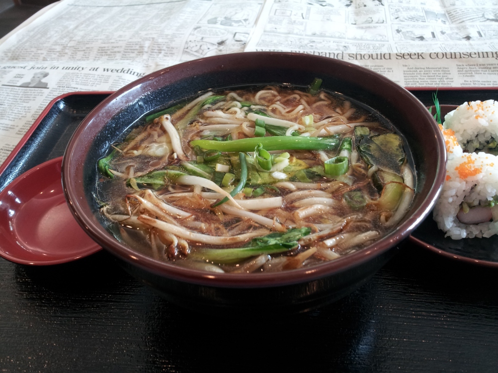Had to eat at Roll Cafe again the other day, it was cool and rainy and a day that required soup. Tried the shoyu ramen rather than the spicy ramen, of course I prefer the spicy ramen. The shoyu was still good. Don’t know if I will eventually get the miso ramen, I like the spicy too much. It comes in a combo with four pieces of California roll, I added on a drink and that was about $12, so a little spendy for lunch but delicious.