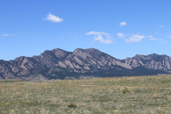 The Flatirons and just south of the Flatirons, and Jefferson County open space in the foreground.