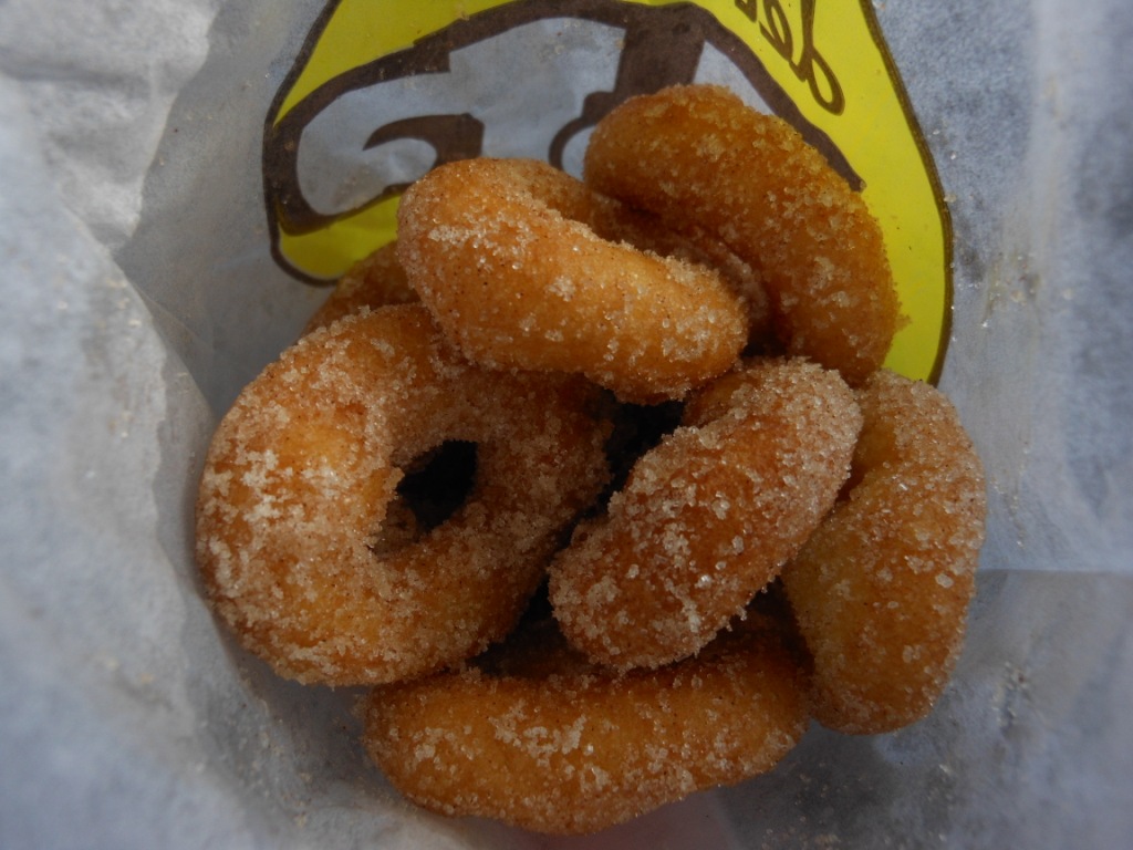 I was more interested in getting to the mini-donut booth. The fair website said this particular booth had a small bag of mini-donuts for $2, well, that was not the case, they were $3, but the machine got jammed while he was working on my bag, so I got about twice as many as I was supposed to, which was OK.