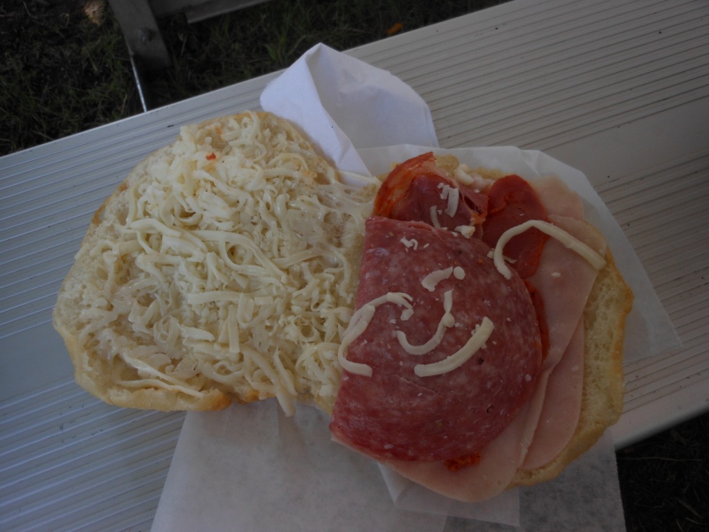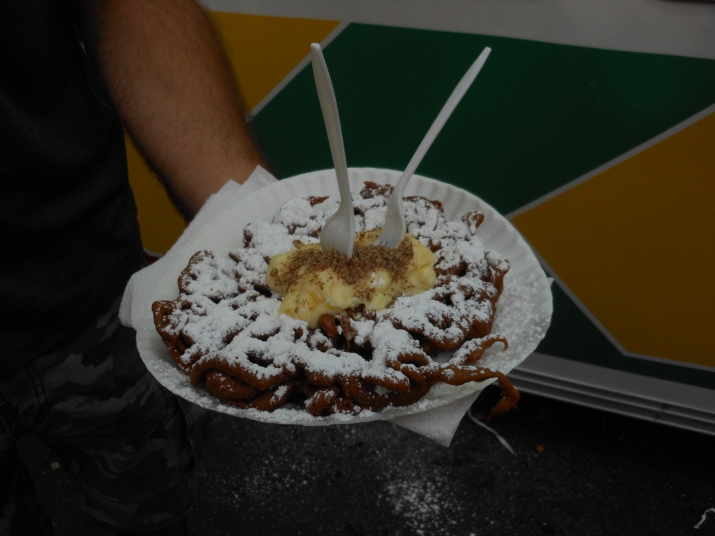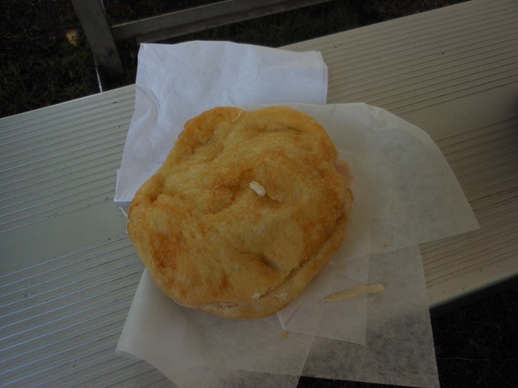 At some point when the kids were riding rides, I got a sandwich at Crescenti – this is a fried bread sandwich with mozzarella cheese, ham, cappicola, hard salami. I think they then warm it up a bit to get the cheese melty. This was very good too, I would have this again. The fried bread is excellent.