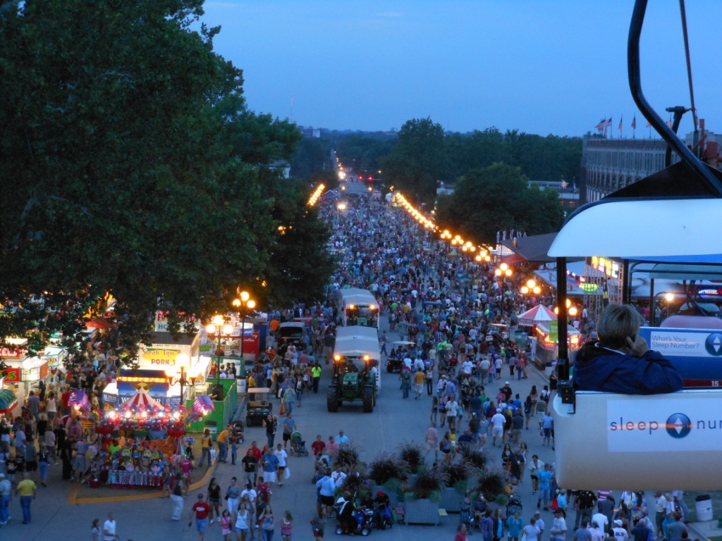 All in all, it was a great trip. I think the ideal way to go would be to have a break day in between each of the days at the fair, because, man, your feet start to hurt. Things I wanted to do but didn’t get to: Iowa wine tent, craft beer tent, sit and watch more of the foods judging, watch the piano, accordion and harmonica contest, watch more of the Bill Riley Talent contest (looking at the results, one of the pairs we saw tap dance from the Sprouts division was selected one of the top three Sprouts acts). I didn’t eat nearly everything I hoped to eat, which is probably just for the best. I would love to get there to get a seat to watch the sheep shearing, and would love to watch some of the more crazy contests like husband calling and rubber chicken tossing.