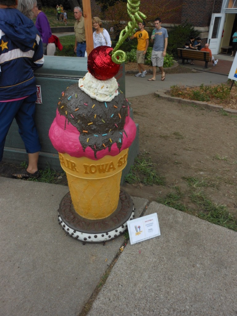 We did wander around that building and look at the exhibits and decorated cakes, and the giant “Chocolate Moose” made of hundreds of pounds of real chocolate. The Iowa State Fair has the largest number of food competitions/entries of any State Fair!