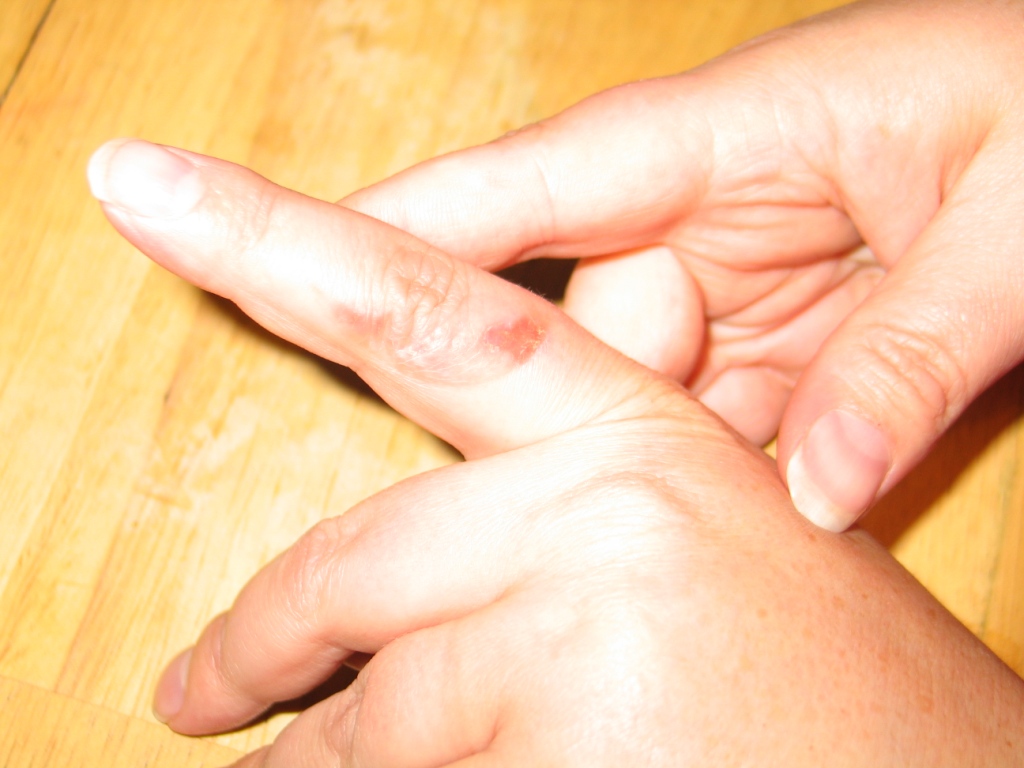April and I wait for the crab.
